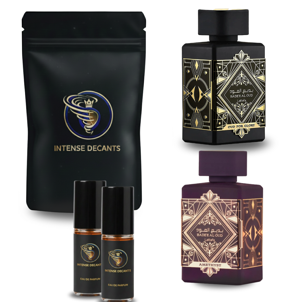A Intense Decants apresenta um kit curado para os verdadeiros entusiastas da perfumaria de nicho. O encontro entre o icônico Oud for Glory e o sedutor Amethyst representa o equilíbrio entre o poder ancestral e a elegância contemporânea. Utilizando tecnologia de envase de última geração, garantimos a preservação das moléculas odoríferas mais sensíveis, assegurando que o decant entregue a mesma performance do frasco lacrado.